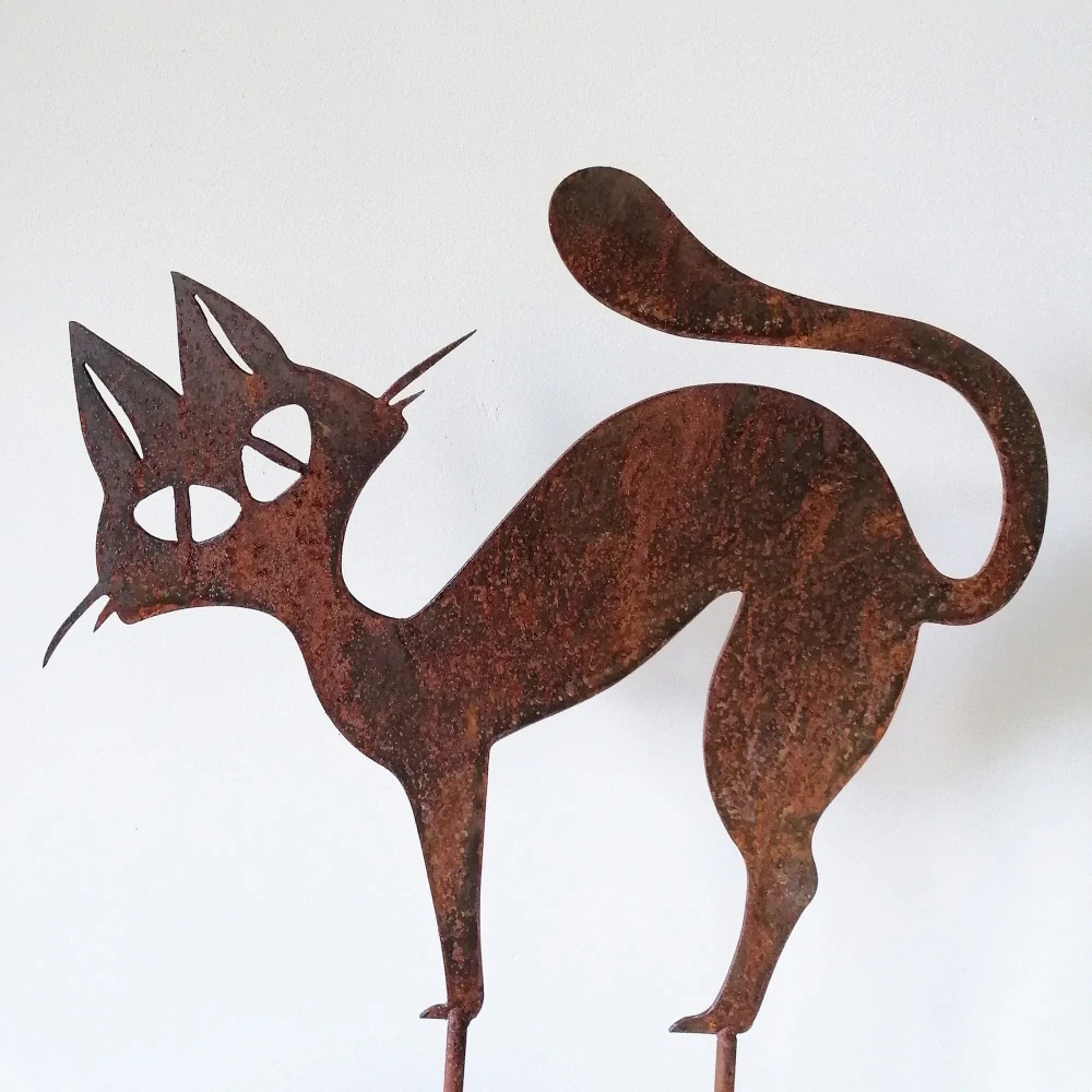 Originální kovová kočka prohnutá jako kočičí hřbet z rezavého plechu je zajímavým doplňkem do každého koutu zahrady. Bude vypadat skvěle na vaší verandě nebo terase a bude pěknou ozdobou během podzimního období.